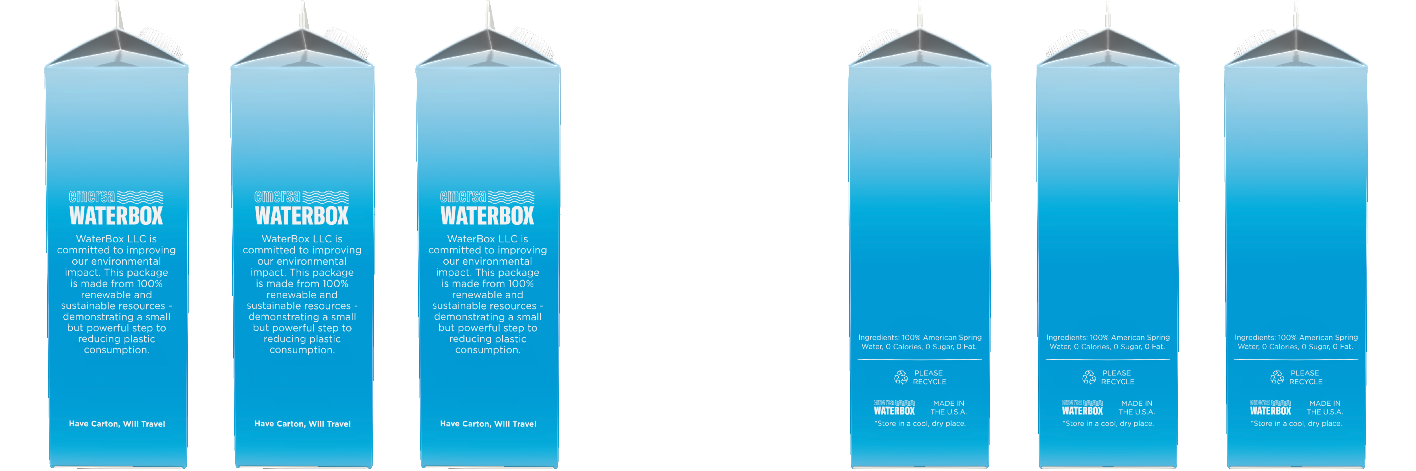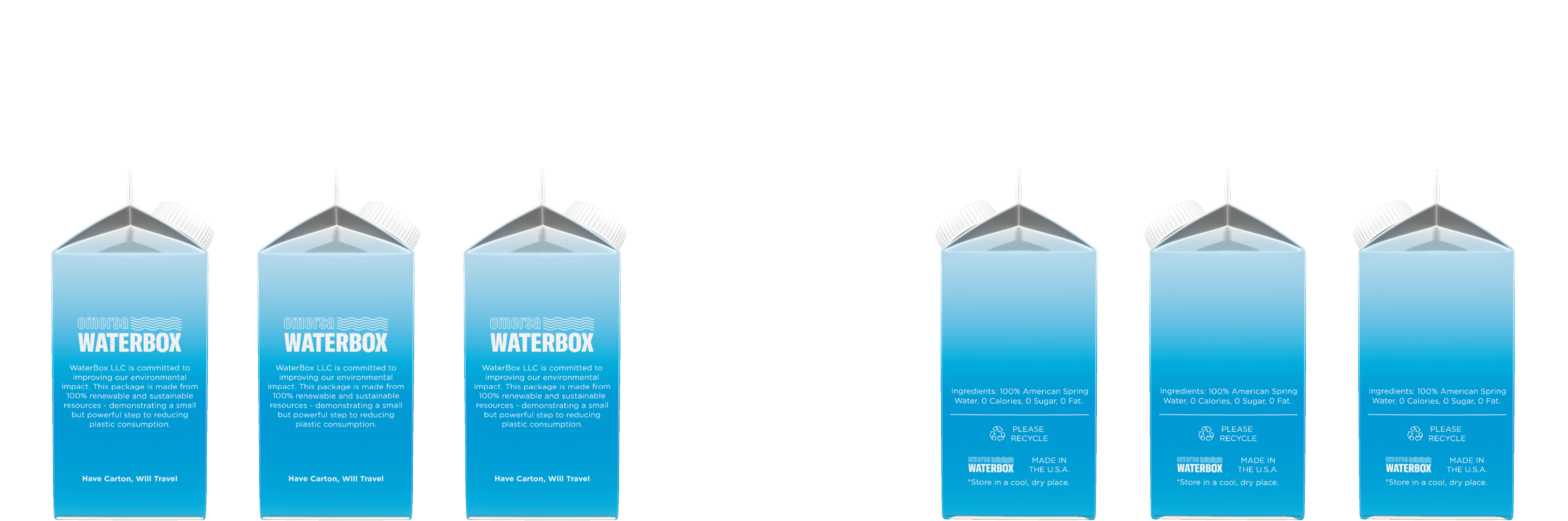 WaterBox sources premium water. We package it in earth-conscious 100% recyclable, mostly paper cartons that contain no BPAs and no volatile organic compounds.